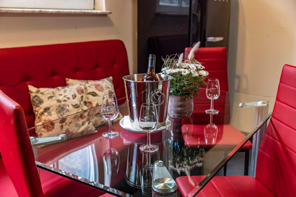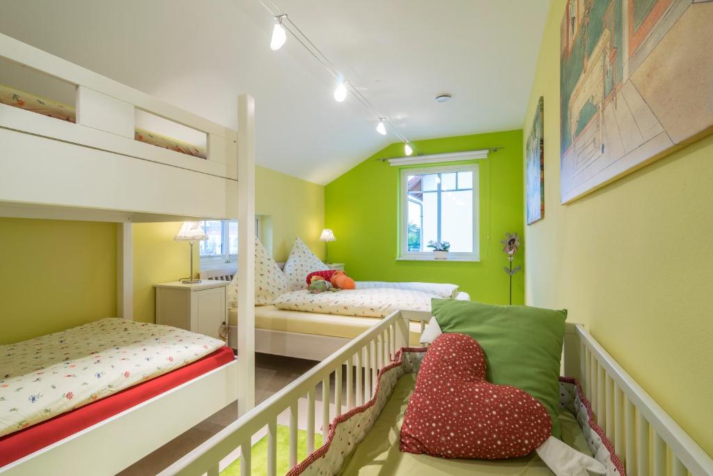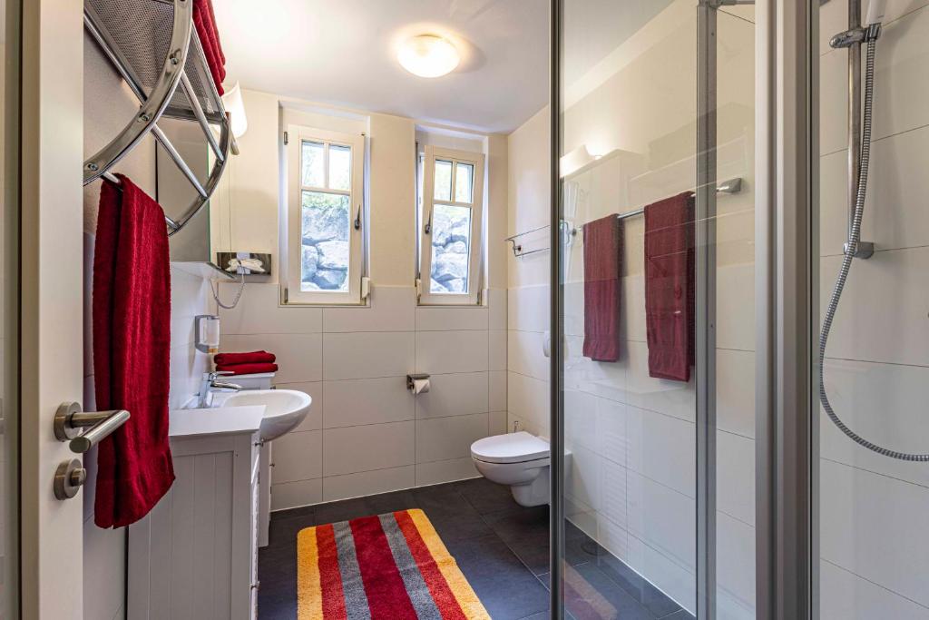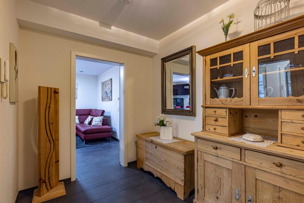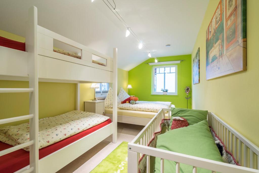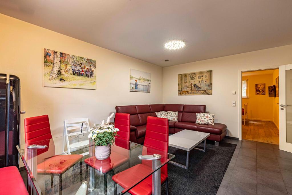 Our apartment in the basement has approximately 60 square meters of living space. You have 2 bedrooms, 1 bathroom with a shower, a living and dining room including a kitchen at your disposal. The accommodation features a flat-screen satellite TV as well as a seating and dining area in the living room. The kitchen is equipped with a dishwasher, an oven, a microwave, a toaster, a refrigerator, and a coffee machine. There is a private bathroom with a shower. Towels and bed linen are provided for you.