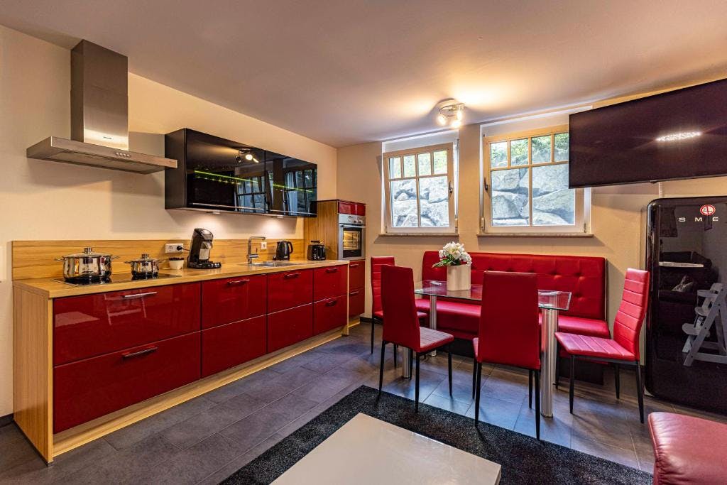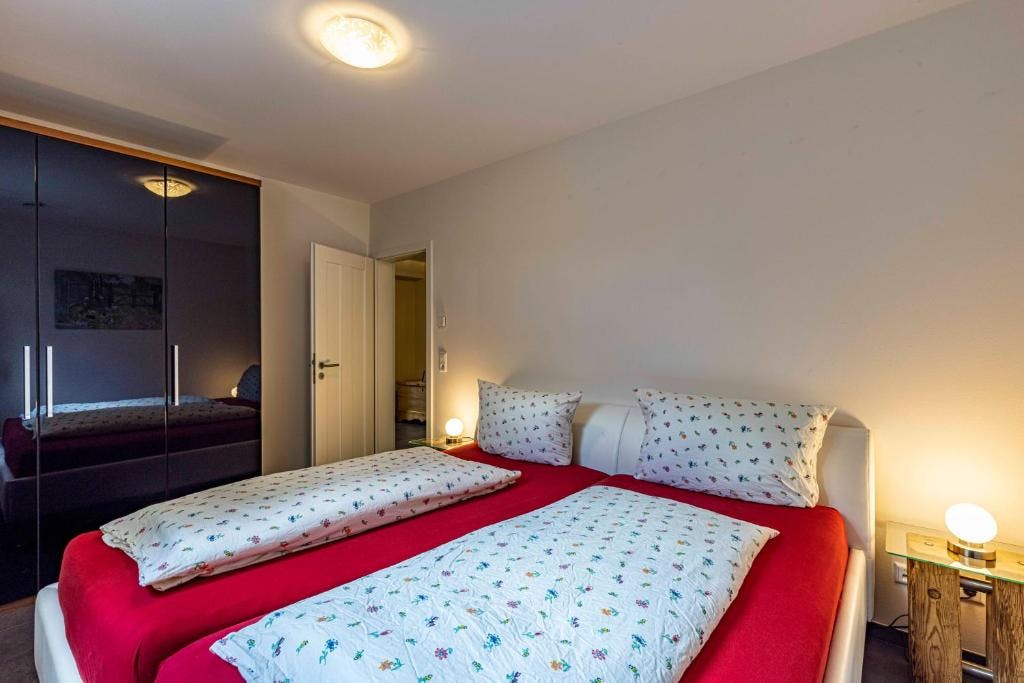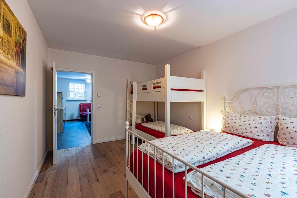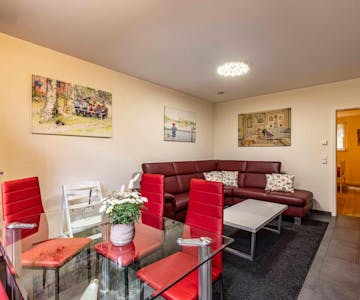 Our apartment in the basement has approximately 60 square meters of living space. You have 2 bedrooms, 1 bathroom with a shower, a living and dining room including a kitchen at your disposal. The accommodation features a flat-screen satellite TV as well as a seating and dining area in the living room. The kitchen is equipped with a dishwasher, an oven, a microwave, a toaster, a refrigerator, and a coffee machine. There is a private bathroom with a shower. Towels and bed linen are provided for you.